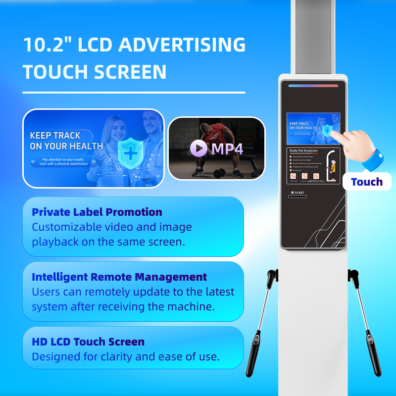 8.8-nokta temas elektrodu, çok frekanslı biyoelektrik empedans (BIA).Göstergeler: vücut yağ yüzdesi, vücut su yüzdesi, kas kütlesi yüzdesi, bazal metabolizma hızı, inorganik tuzlar vb.